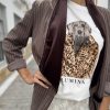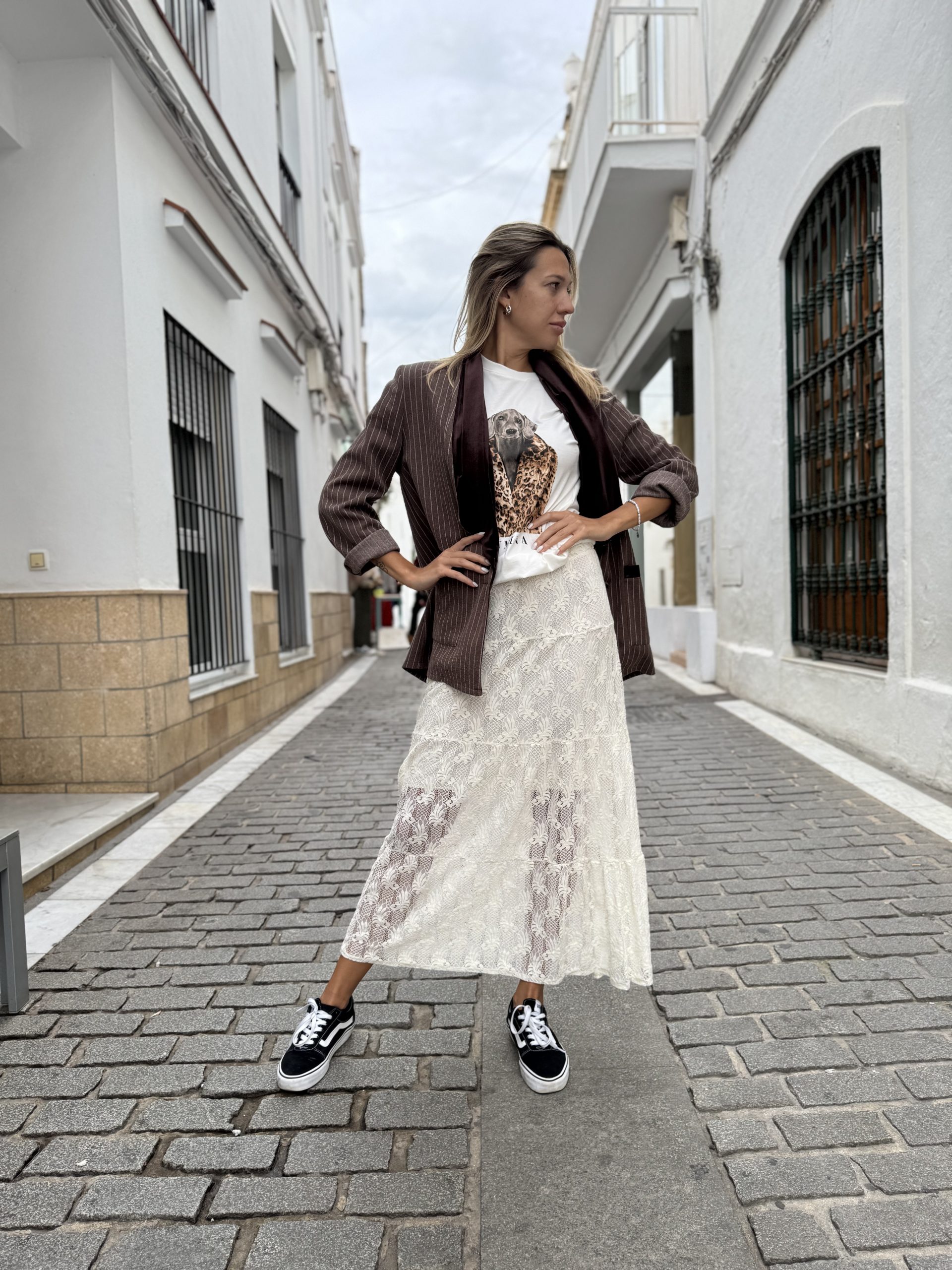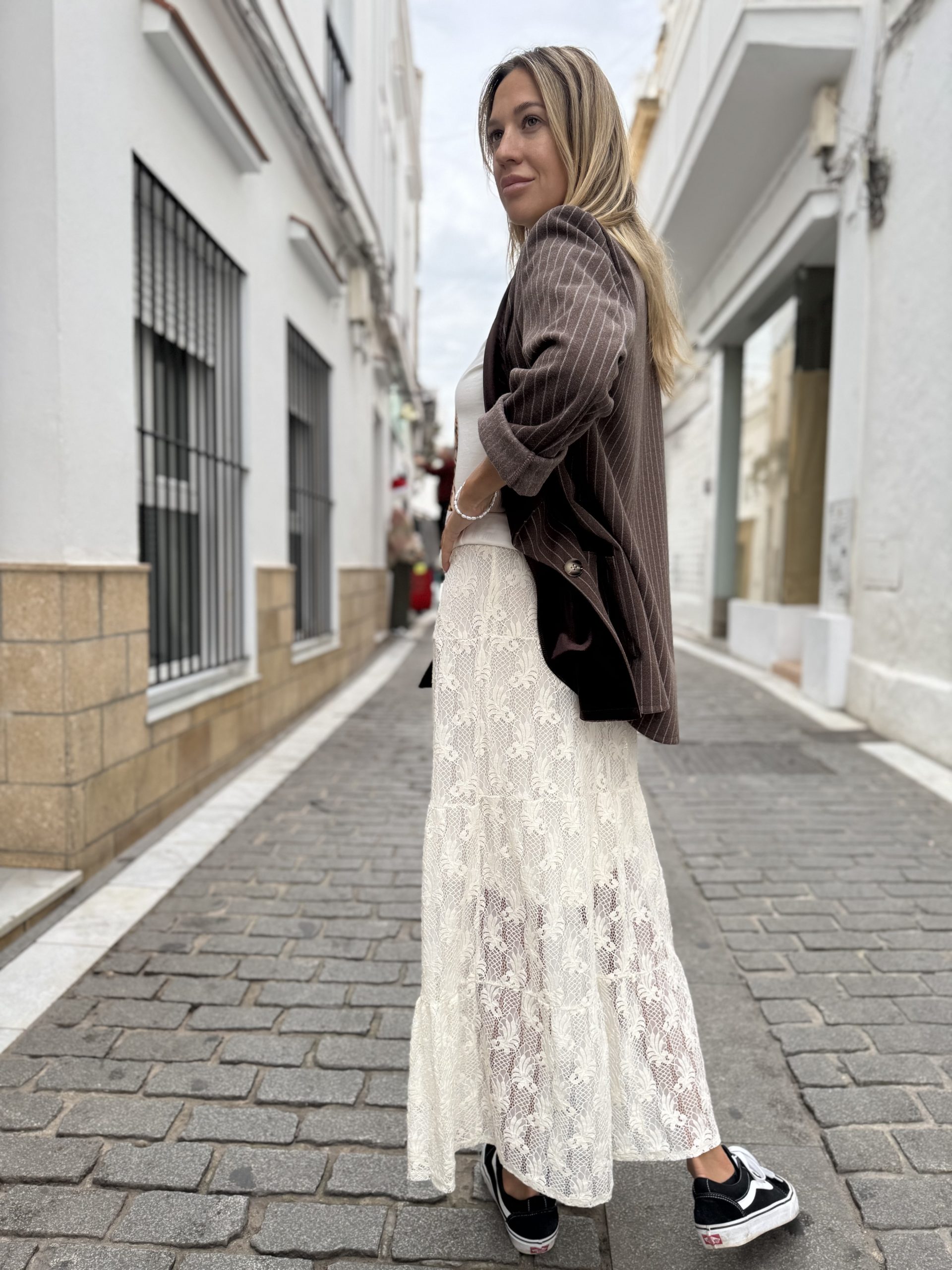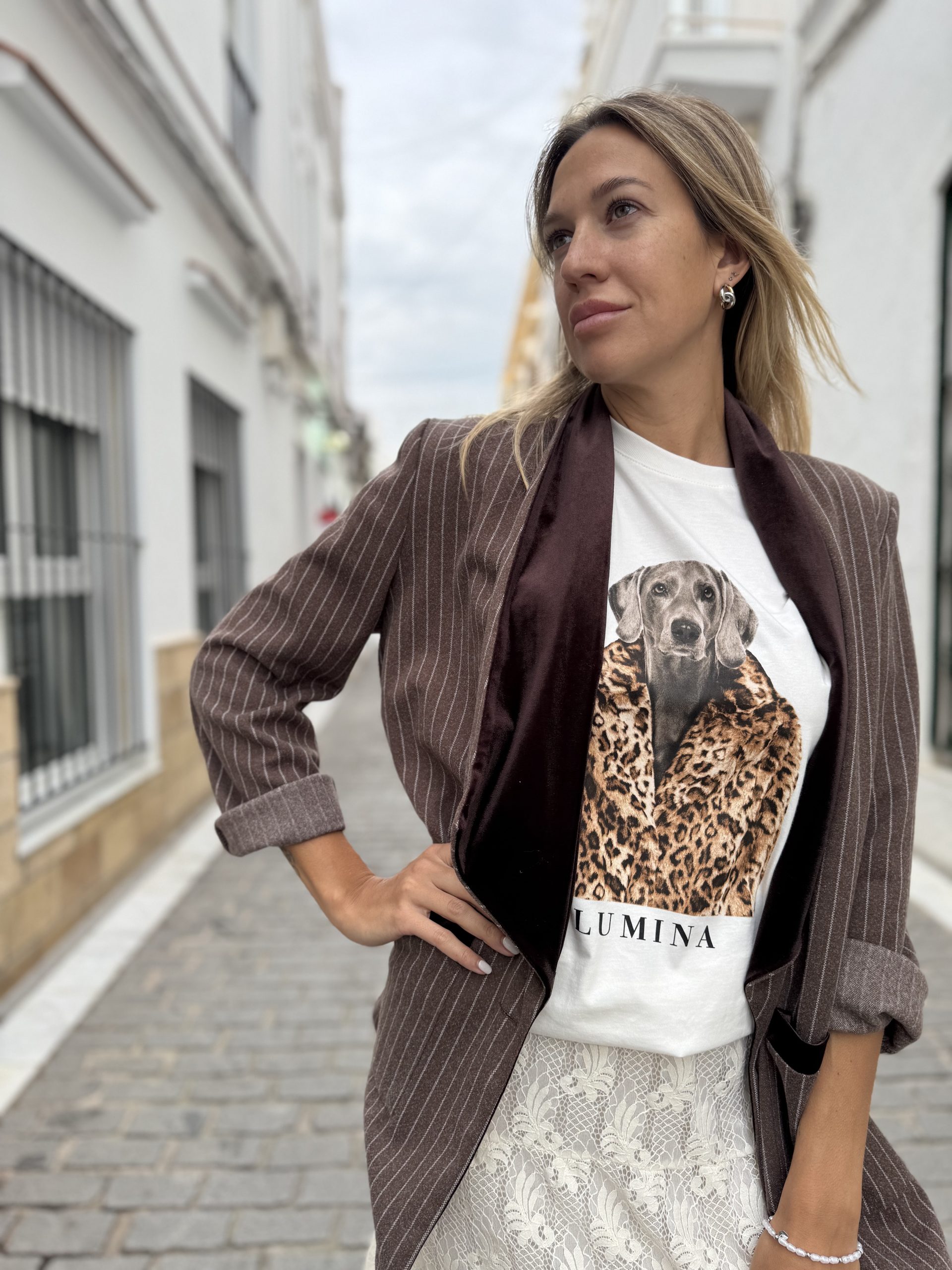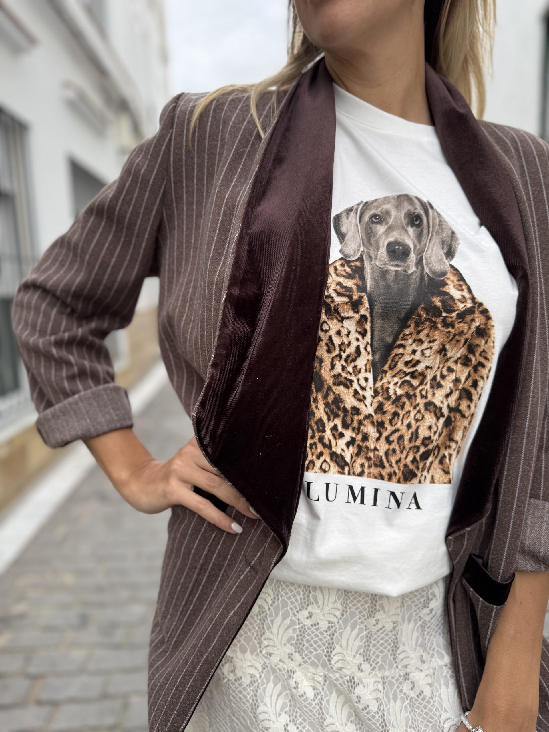 Blazer rayas, solapa terciopelo y manga larga.