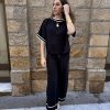 Pantalón tipo palazzo con cintura elástica ajustable.