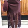 Femenina y sofisticada, esta falda de encaje burdeos combina delicadas transparencias con una base de raso suave y brillante. Su diseño resalta la silueta con elegancia y sensualidad, ideal para looks de noche o eventos especiales.
