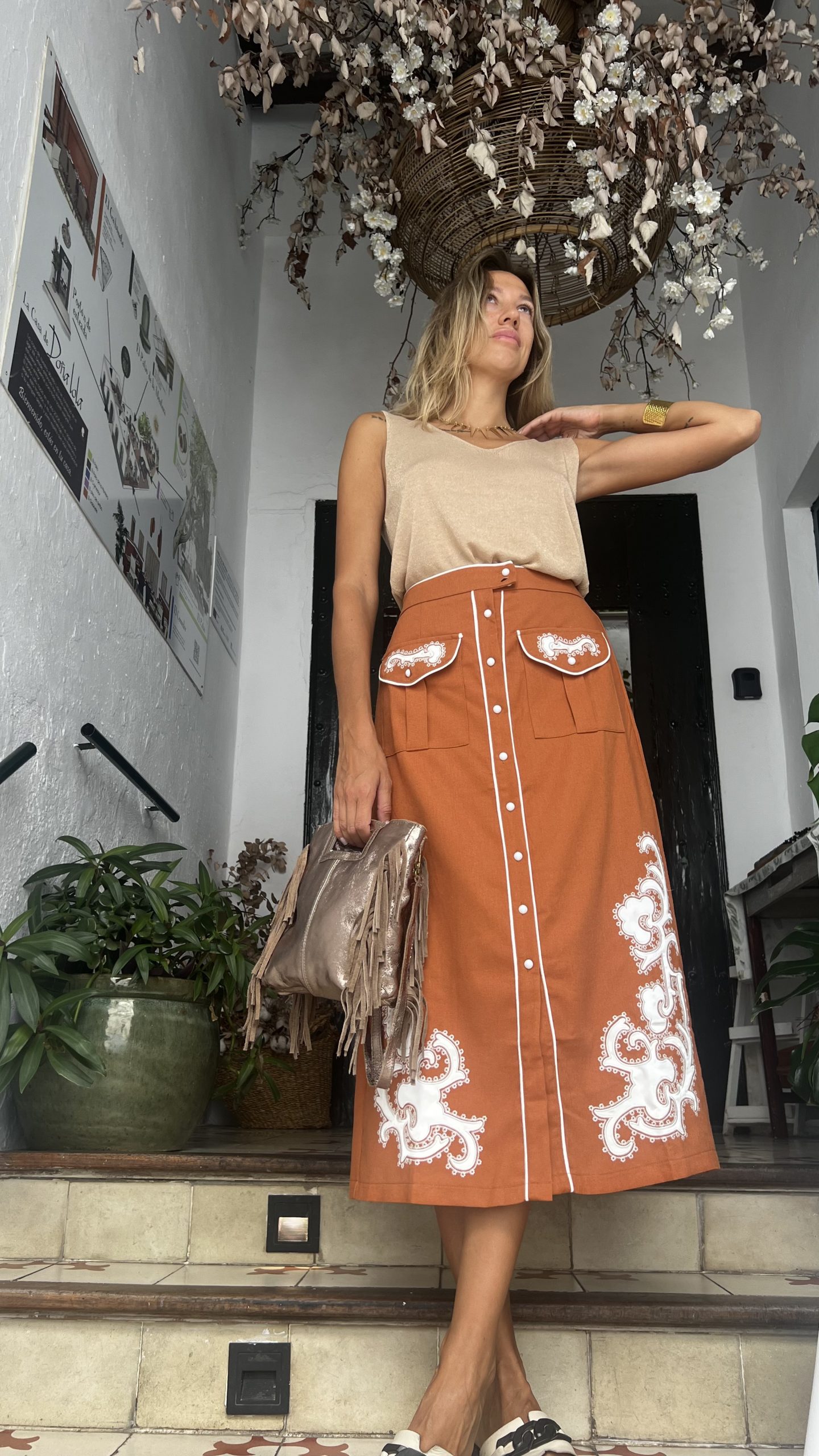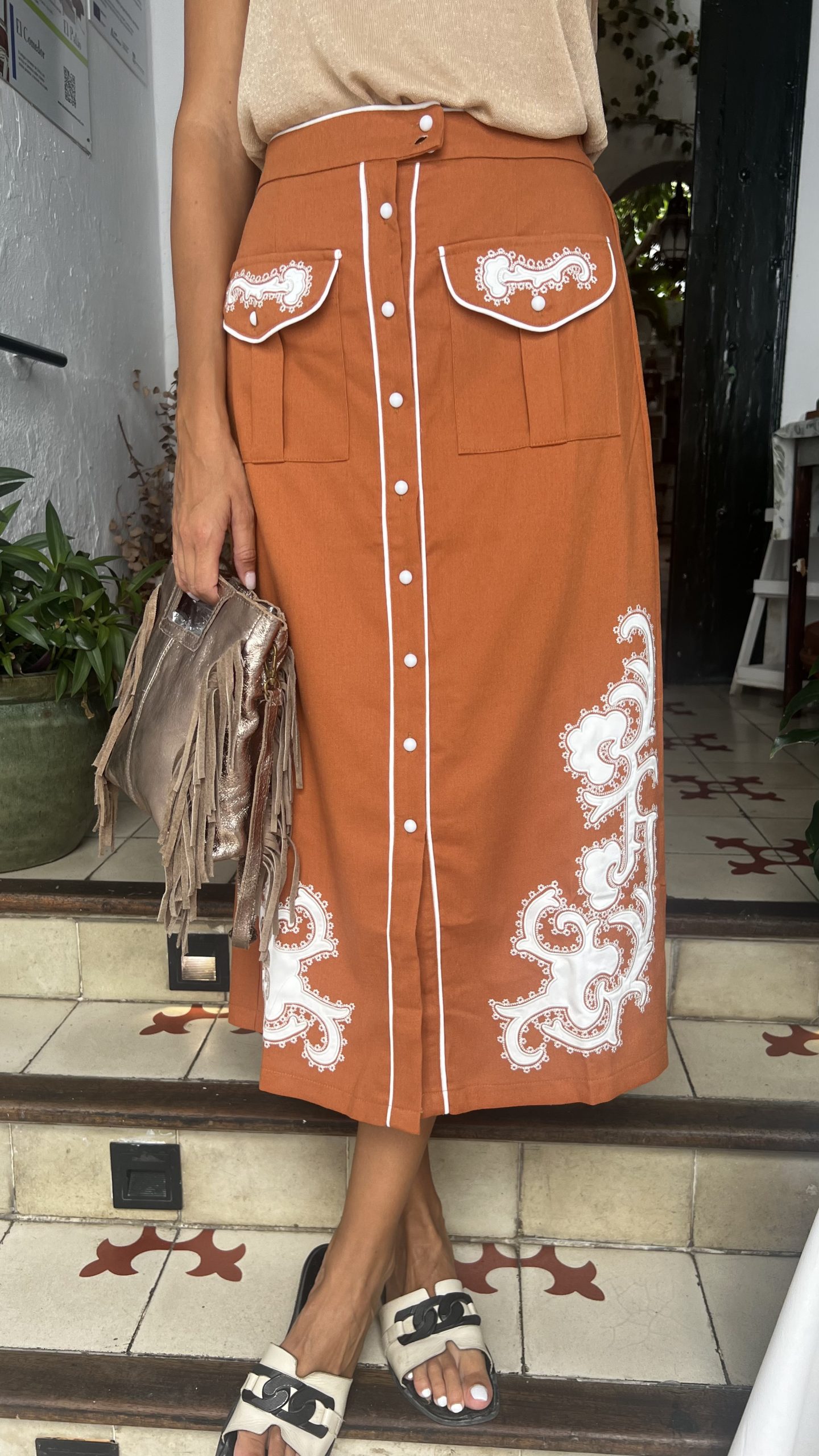 La Falda Midi Bordada es una prenda esencial que combina estilo y comodidad. Su corte recto y la cintura engomada en la parte trasera garantizan un ajuste perfecto a tu figura. La bordadura detallada añade un toque de sofisticación, convirtiéndola en una opción ideal para diversas ocasiones, desde un día de trabajo hasta una salida especial. Esta falda es sumamente versátil y se puede combinar fácilmente con distintos tipos de tops o jerséis, permitiendo crear looks tanto casuales como más elaborados.