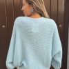 Este suéter extragrande en tono celeste es la combinación perfecta de comodidad y estilo. Confeccionado en un tejido suave, su diseño amplio transmite un aire relajado pero con un toque sofisticado. El detalle del lazo en el pecho añade un acento femenino y delicado que lo hace destacar de forma sutil.
