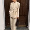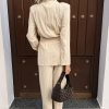 Pantalón clásico de traje en color beige, diseñado para complementar el blazer a juego. Confeccionado en un tejido ligero y fluido, ofrece una caída elegante y un movimiento natural. Presenta una silueta recta y relajada, con cintura elástica para mayor comodidad y un ajuste flexible, sin cierre ni botones visibles. Su diseño minimalista mantiene una apariencia pulida y contemporánea, ideal tanto para el día a día como para ocasiones más formales. Completa el conjunto con el blazer coordinado para un look sofisticado y sin esfuerzo.
