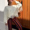 Sudadera de diseño clásico y casual, reinventada con un toque original gracias a los flecos decorativos. Confeccionada en un tejido cómodo y suave, mantiene el estilo relajado de una sudadera tradicional, pero los flecos añaden movimiento y personalidad, creando un look fresco y con carácter. Perfecta para quienes buscan una prenda versátil con un giro inesperado que eleva cualquier conjunto del día a día.