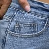 Descubre el vaquero recto de tiro alto que se convertirá en un imprescindible en tu guardarropa. Con un diseño clásico y a la vez moderno, este pantalón combina la elegancia de su corte recto con la originalidad de los detalles brillantes, aportando un toque de sofisticación a cada look.