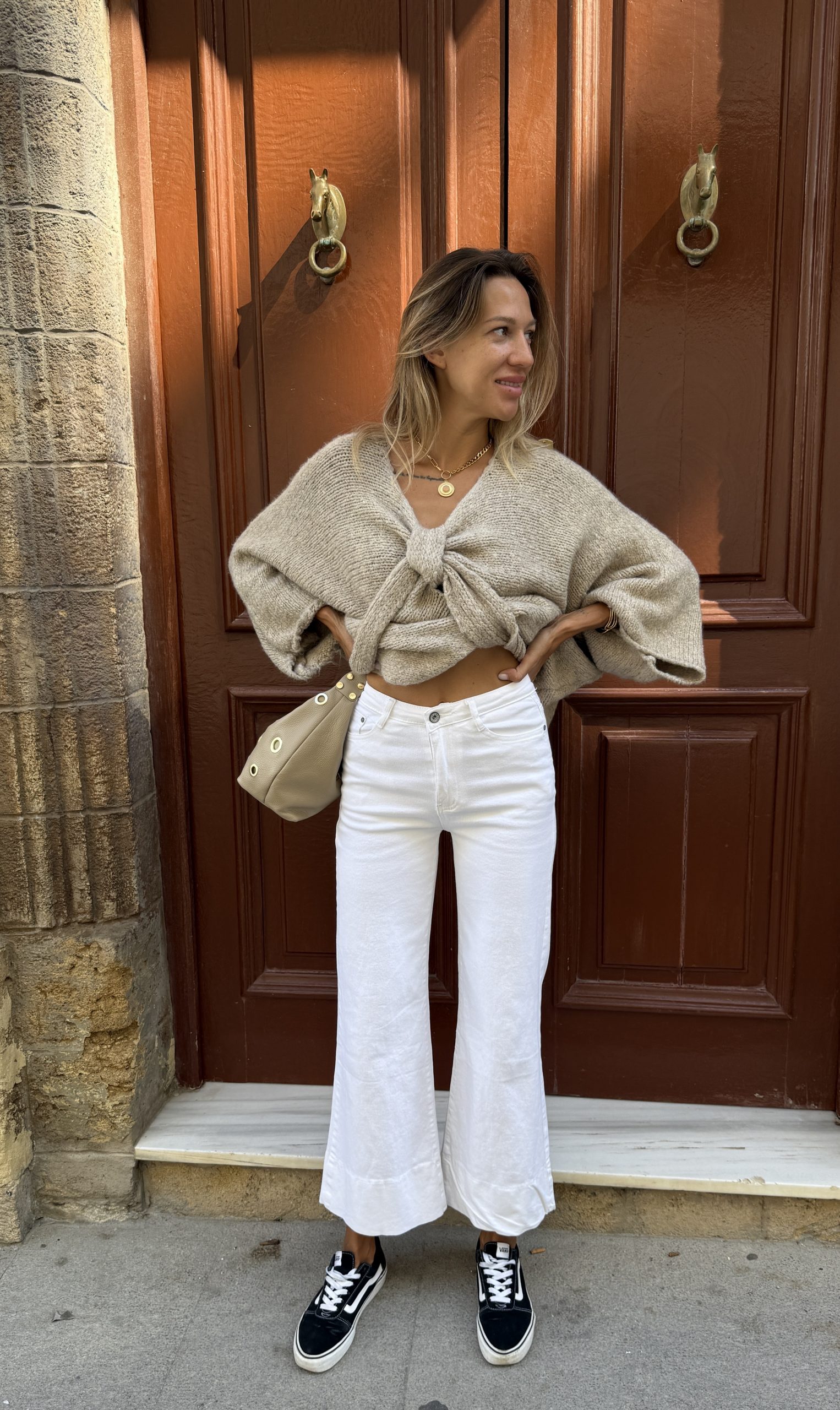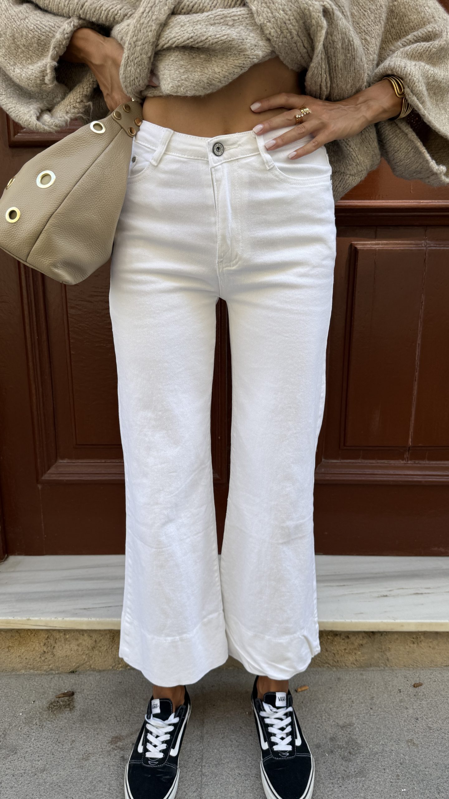 Los vaqueros blancos acampanados son una prenda atemporal que combina elegancia y un toque retro con una silueta moderna. Su diseño entallado en la parte superior y ligeramente acampanado desde la rodilla crea una figura estilizada y alarga visualmente las piernas, convirtiéndolos en una opción favorecedora para todo tipo de cuerpo.
