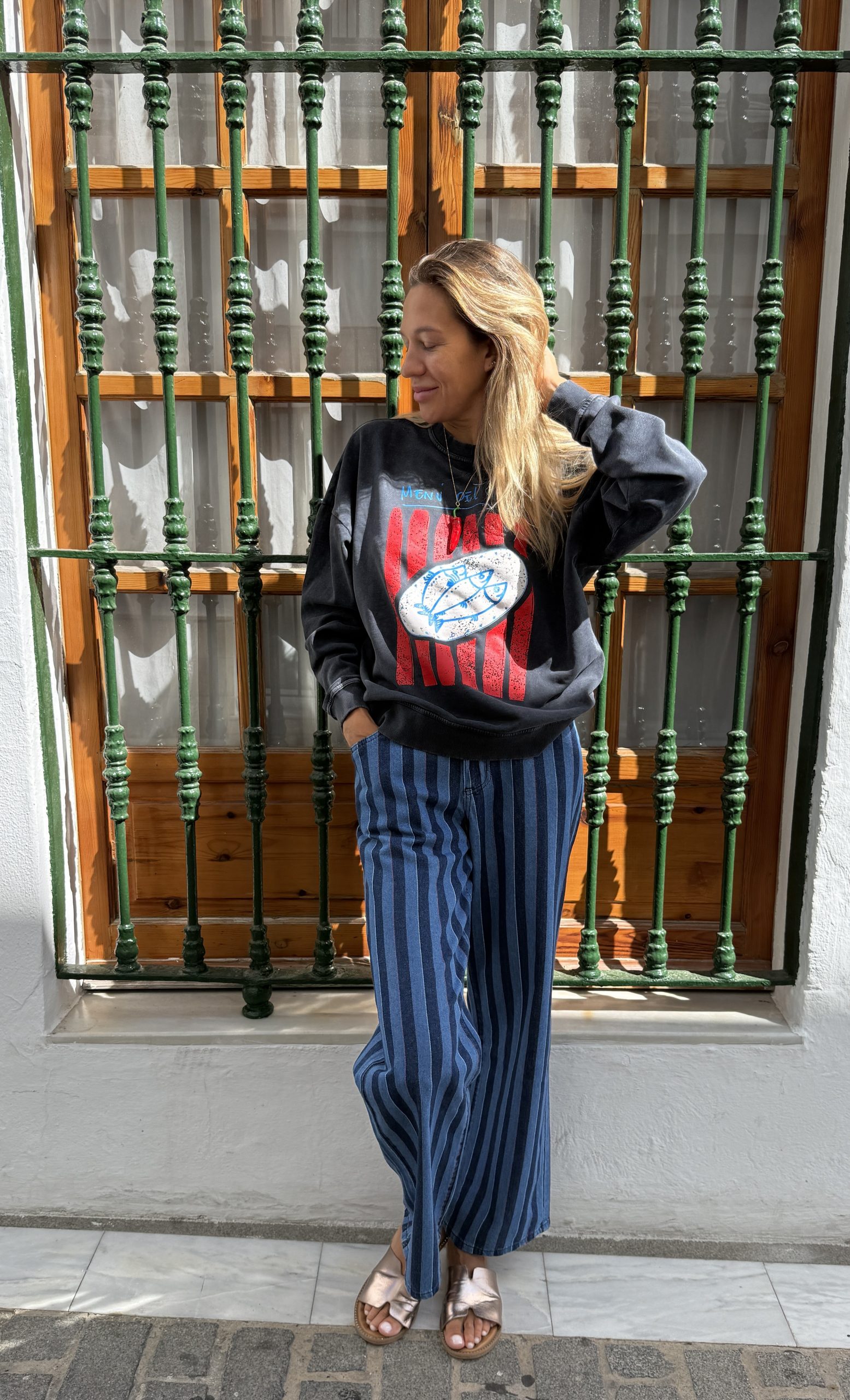 Descubre la perfecta combinación de comodidad y estilo con estos jeans de pierna ancha y estampado de rayas. Diseñados para quienes buscan un look moderno y sofisticado, estas prendas ofrecen un corte amplio que brinda libertad de movimiento y un estilo relajado. El estampado de rayas añade un toque dinámico y atrevido, haciendo que estos jeans sean la opción ideal para lucir en cualquier ocasión casual o informal. Combínalos con una blusa sencilla o una camiseta ajustada para un conjunto vanguardista y a la moda.