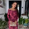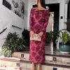 Este vestido en tonos morados y rosas es perfecto para eventos especiales, combinando elegancia y un diseño moderno. Su escote off-shoulder deja los hombros al descubierto, mientras que las mangas al codo aportan un toque sofisticado. La silueta estructurada resalta la figura con firmeza y estilo, y los contrastes de color añaden un aire femenino y actual. Ideal para invitadas que buscan destacar con un look refinado y con carácter.
