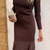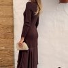 Este vestido largo de punto es pura elegancia con un aire moderno y femenino. Su corte sirena se ajusta al cuerpo realzando la silueta de forma delicada, mientras que el tejido suave y elástico garantiza comodidad sin perder sofisticación.