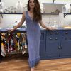 Vestido con flecos en el bajo color azul añil.