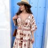 Su corte elegante con cintura ajustable y mangas al codo estilizan la silueta y aporta un aire boho chic irresistible.