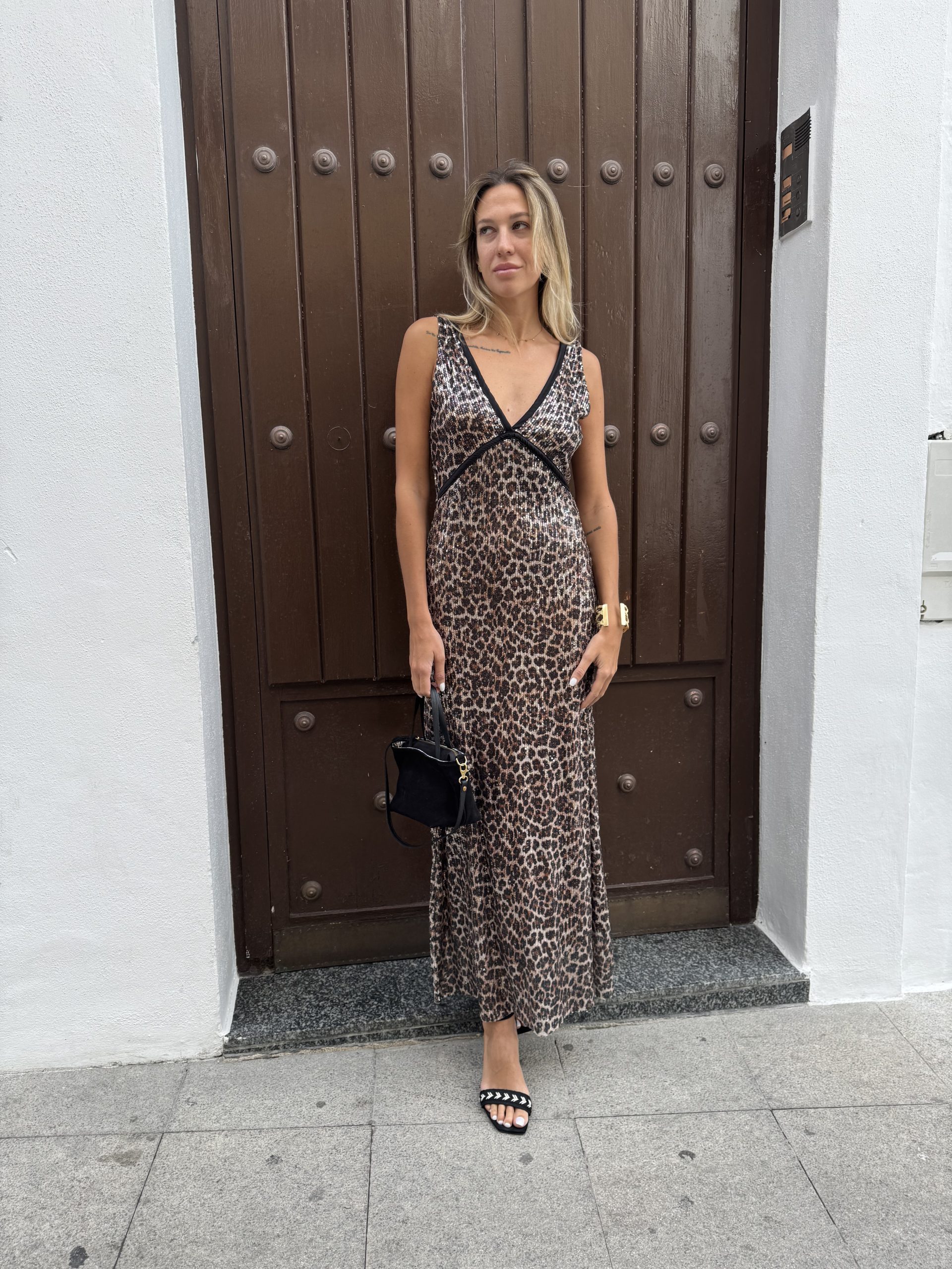 Este impresionante vestido largo de lentejuelas con estampado animal print es la elección perfecta para quienes buscan destacar en cualquier evento especial. Con un diseño que abraza la figura, el vestido resalta la silueta femenina, mientras que su acabado brilliante capta la luz en cada movimiento, creando un efecto deslumbrante. Fabricado en una tela muy elástica y suave, este vestido se adapta a tallas 34-40.